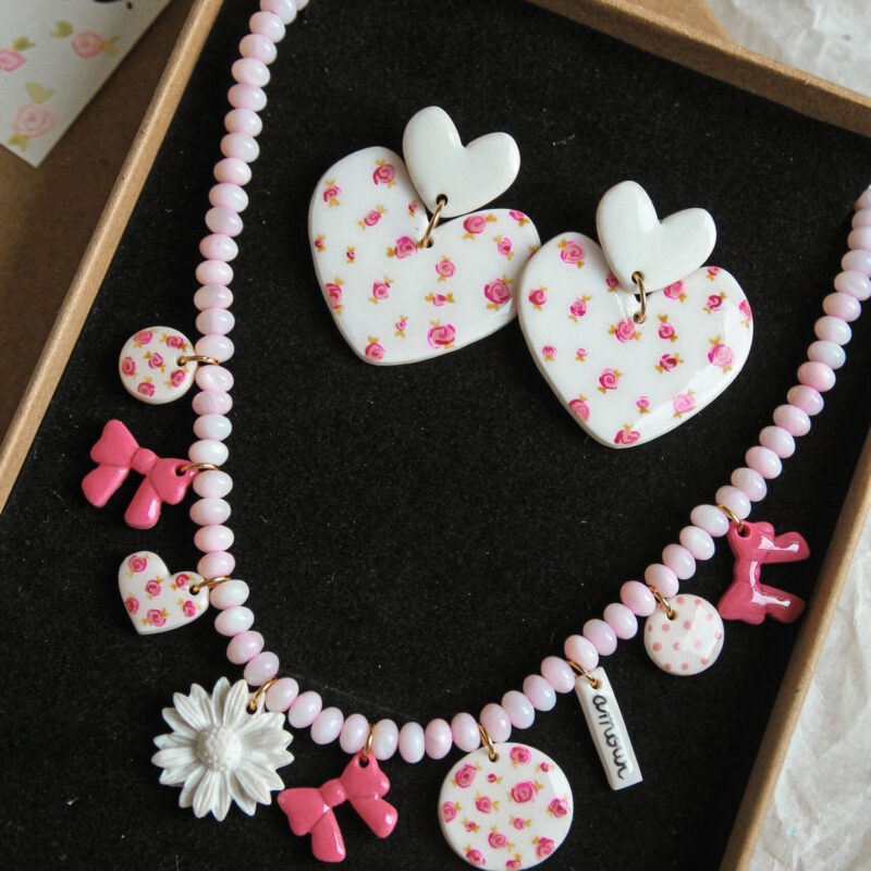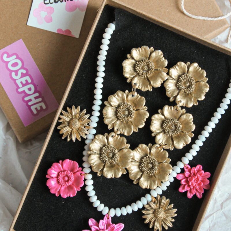 Chaque coffret est composé du collier et d’une paire de boucles d’oreilles.