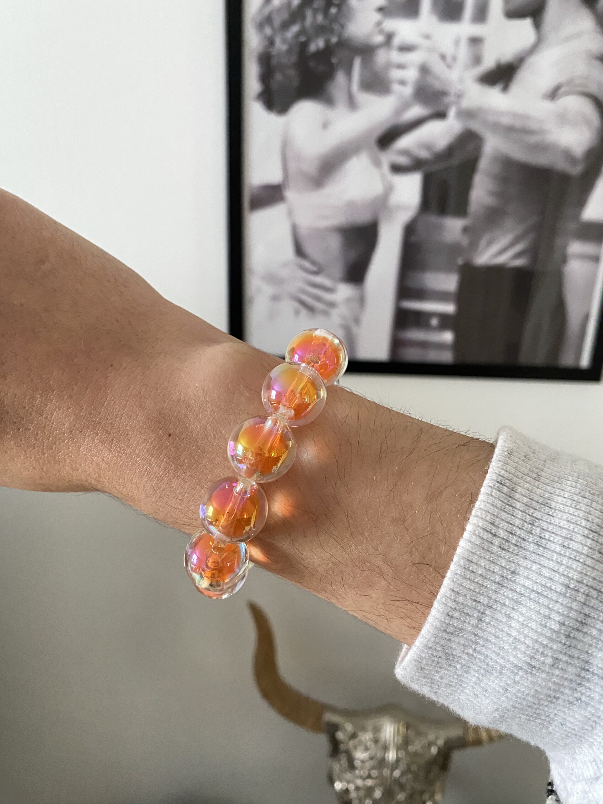 Fil élastique ajustable (si vous avez un poignet plus fin ou plus épais, n’hésitez pas à le préciser en note de commande)