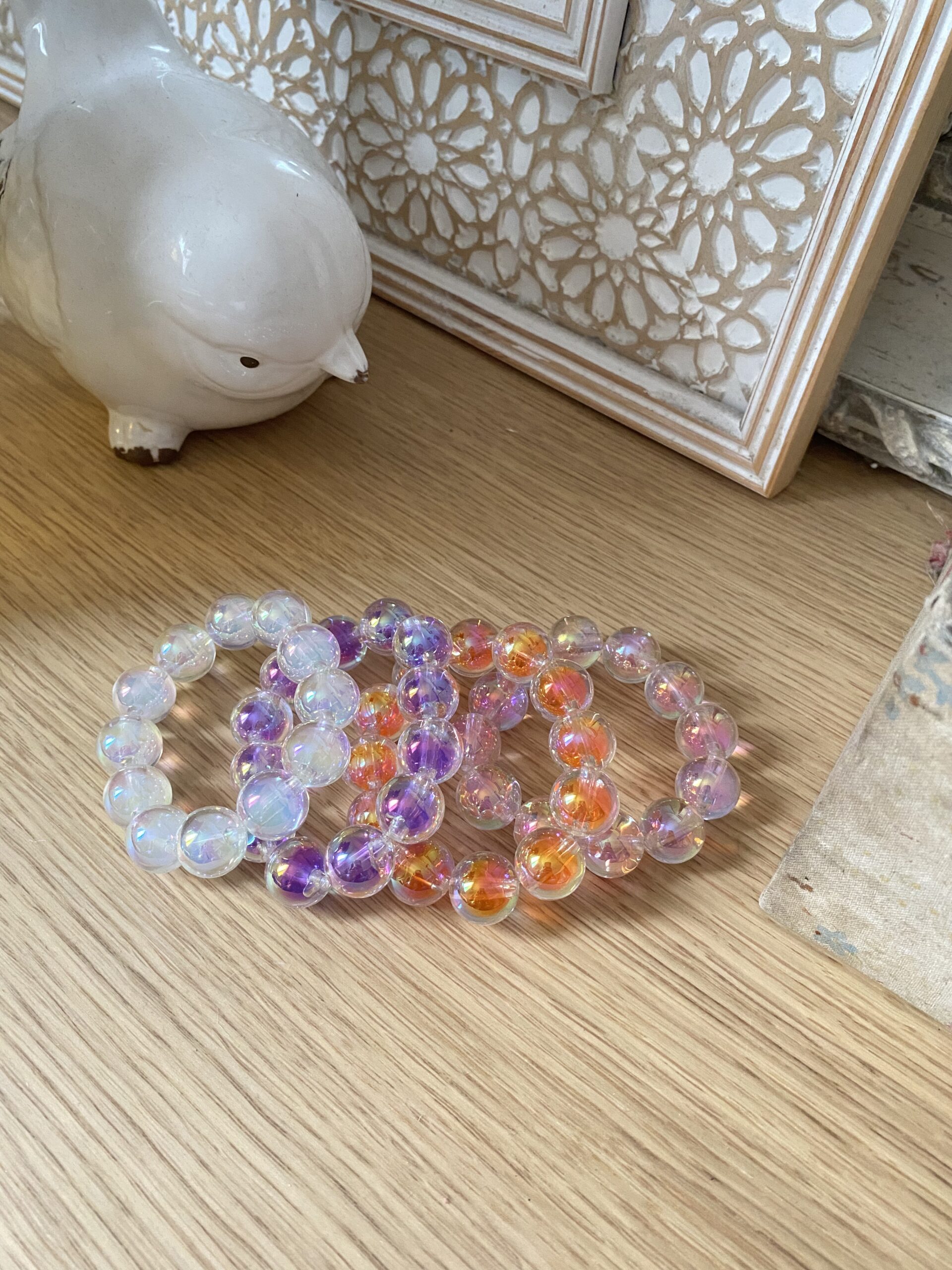 Ce bijou délicat est composé de perles d’imitation “bulle de savon”, aux reflets irisés.