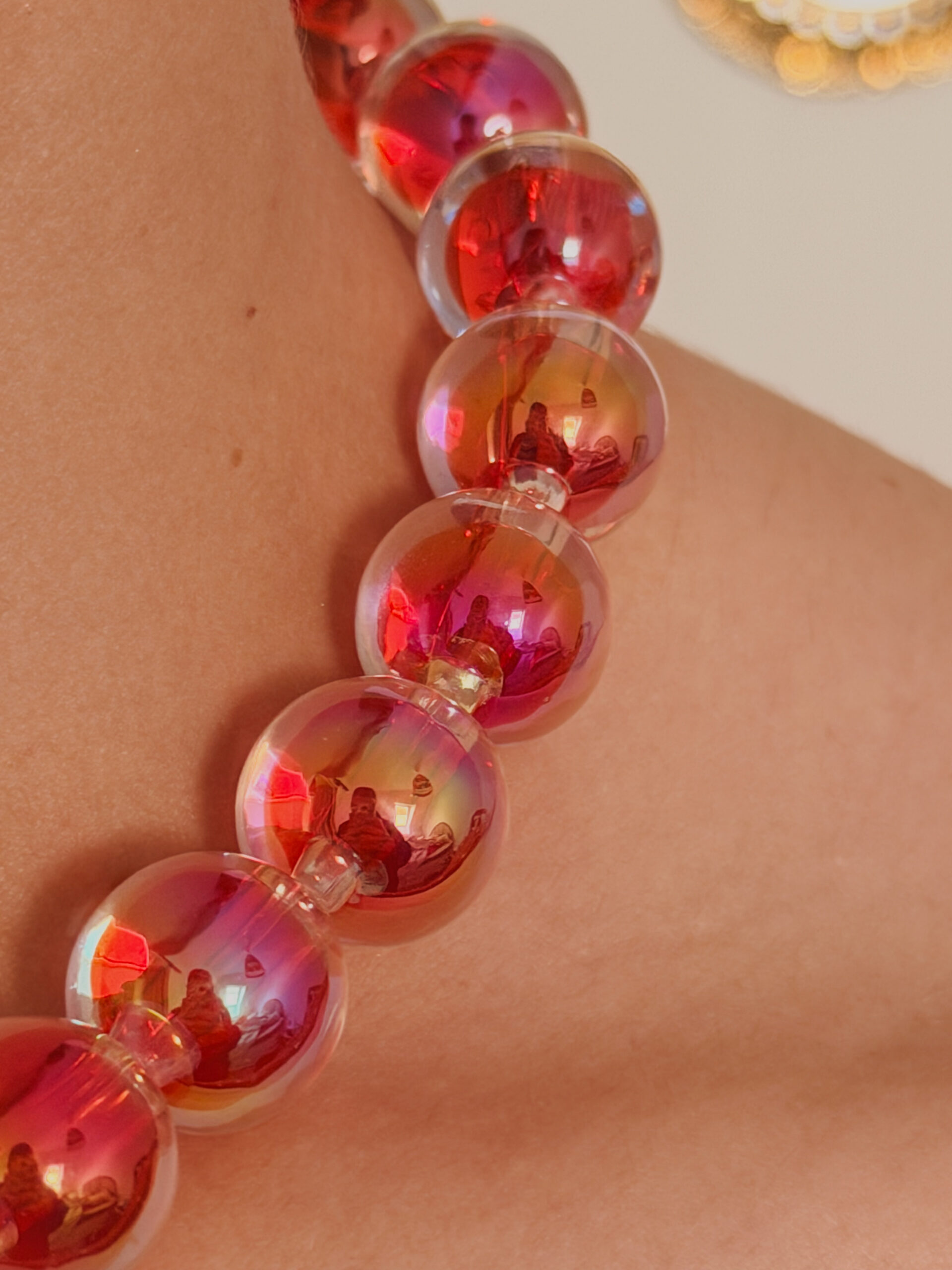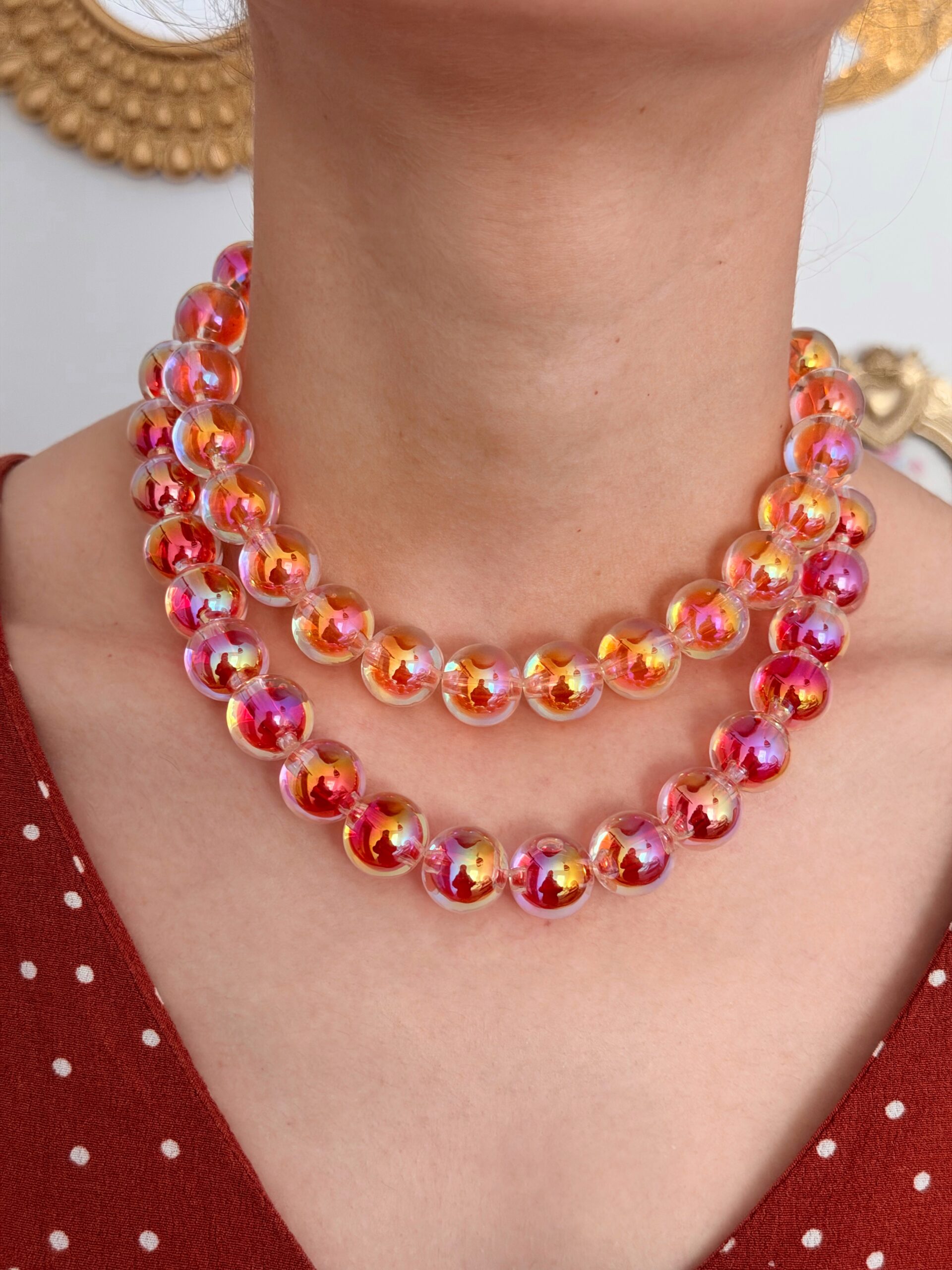 Avec ses perles bulles translucides qui captent la lumière à chaque mouvement, il t’enveloppe dans un cocon de féminité et d’audace. Intime, lumineux et affirmé, c’est le collier qui sublime ton énergie.
