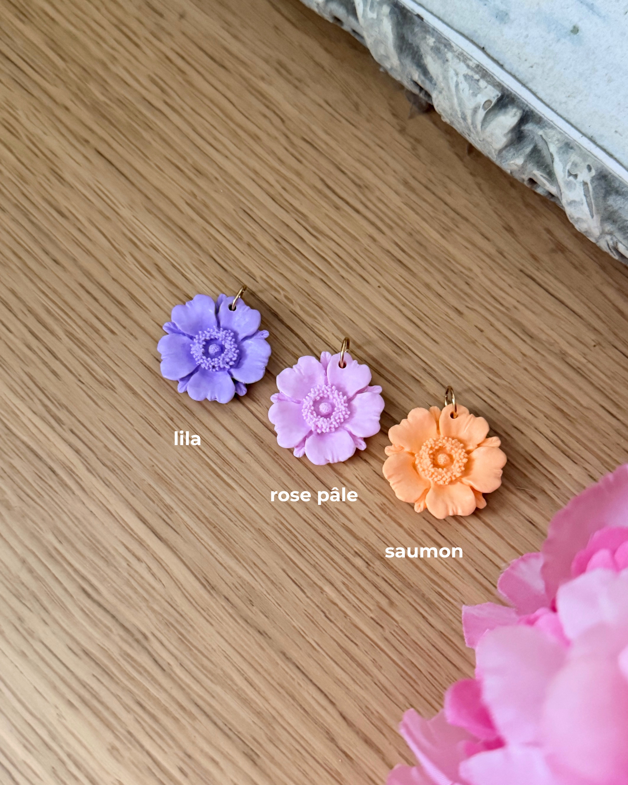 🌸 Charms fleurs anémones : lila, saumon, rose pâle
